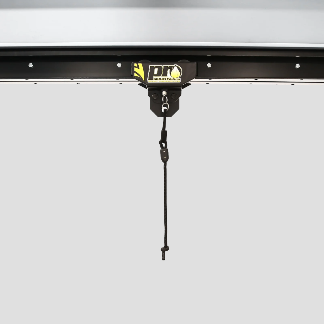 Designed for our heavy-duty SP-Track, this stainless steel roller mount supports up to 260 lb and effortlessly glides heavy bags out of the way in high-ceiling spaces — featuring UHMW wheels, Grade 5 hardware, and a double braided nylon pull rope.
